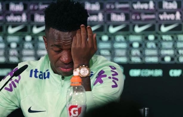At the press conference before the Spain-Brazil match tomorrow morning, forward Vinicius broke down in tears as he repeatedly had to answer questions about racial discrimination.